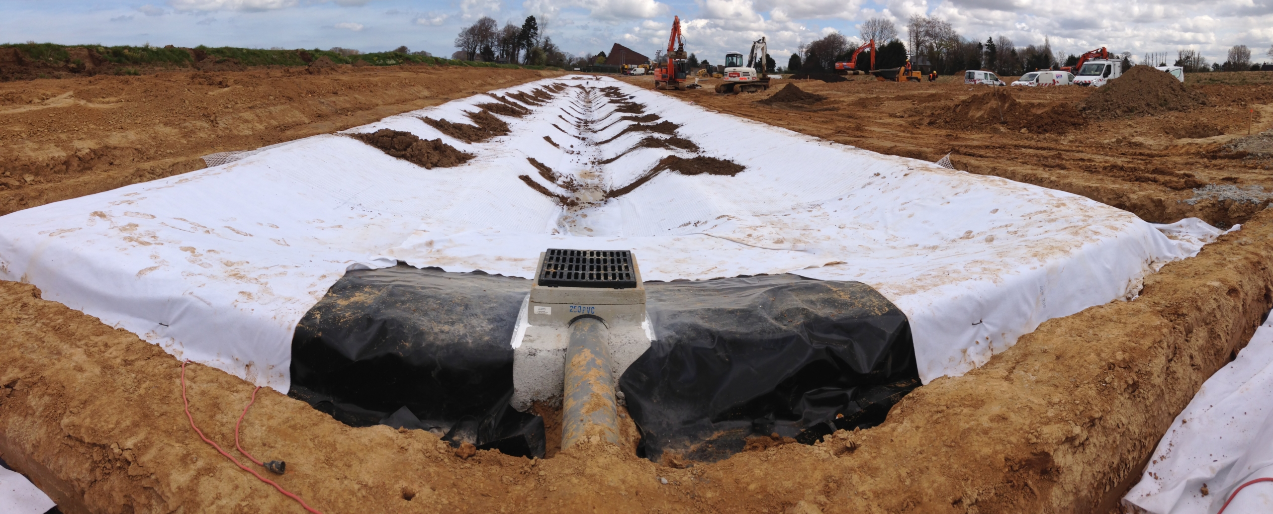 Bassin réservoir 30 000m² d’étanchéité ; 35 000m² de lacs d’agrément, rivière et phytoremédiation;