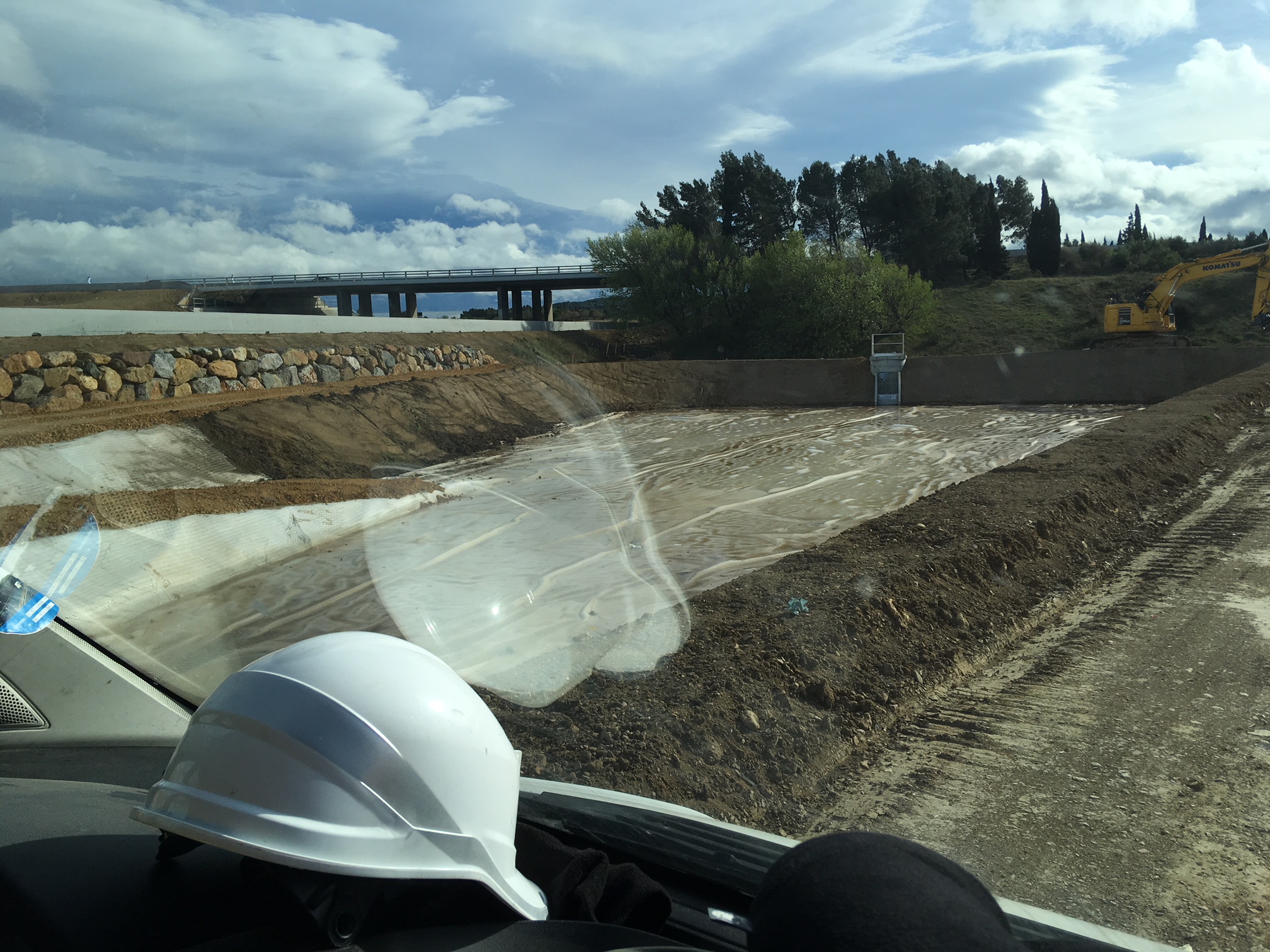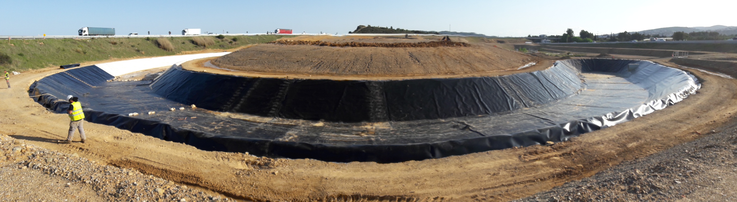 5 bassins ont été réalisés dans le cadre de ce chantier, et étanchés par une géomembrane de type PEHD 15/10ème.