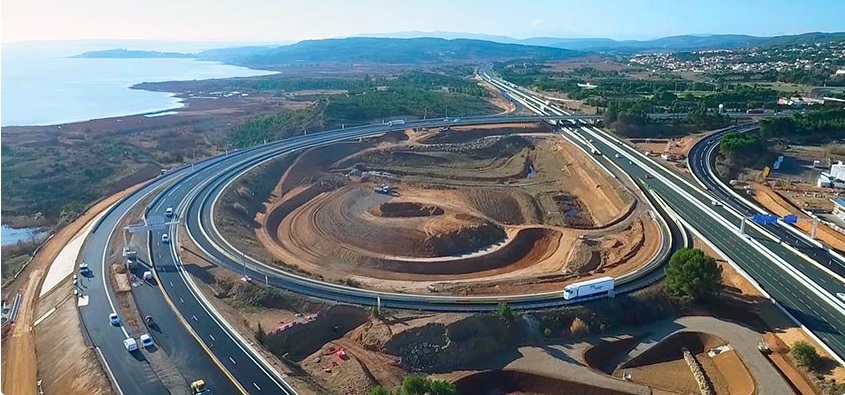 la surface totale étanchée s’élève à 16 000m². Sur le réseau VINCI Autoroutes, la bifurcation autoroutière A9/A61 située au sud de Narbonne relie l’autoroute A61 (axe Toulouse Narbonne) à l’autoroute A9 (axe Perpignan Orange). Cette section supporte d’importants trafics, notamment en période de départs et de retours de congés, ce qui est régulièrement source de congestion.