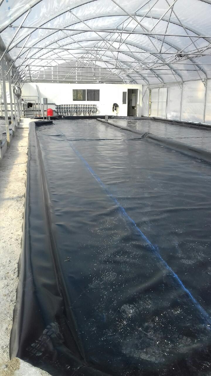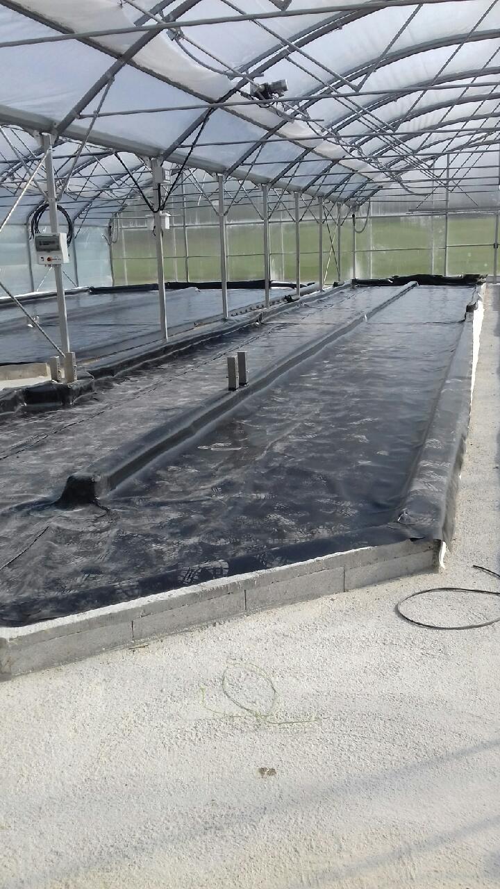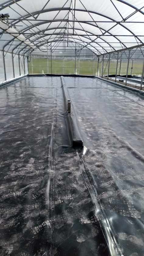 Bassins de faible profondeur sous serre pour la production de spiruline