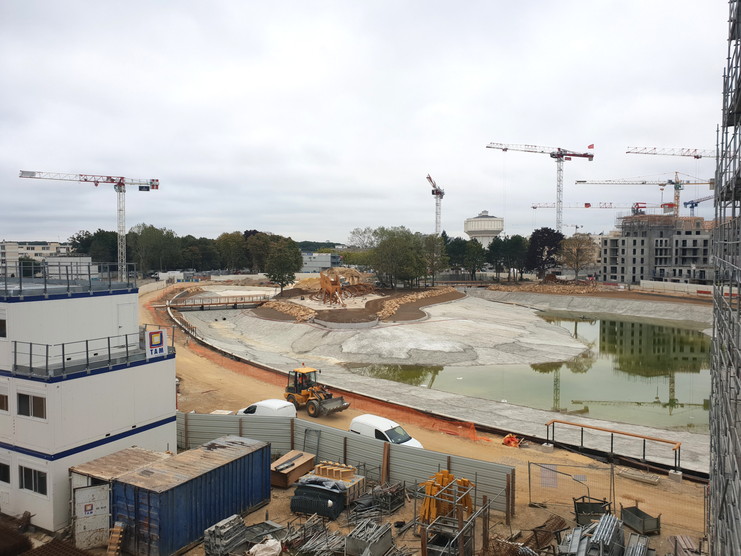Bassin réservoir 30 000m² d’étanchéité ; 35 000m² de lacs d’agrément, rivière et phytoremédiation;
